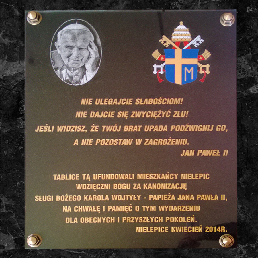Nasz zakład zajmuje się m.in. projektowaniem i wykonaniem tablic pamiątkowych. Wykonujemy je z granitu, z marmuru lub pamiątkowy napis umieszczany jest bezpośrednio na wypolerowanym fragmencie powierzchni kamienia lub skały. Najczęściej przybierają one formę prostokątnych tablic lub płyt kamiennych z wykonanym napisem oraz dowolnym, wygrawerowanym w kamieniu, wizerunkiem (twarz, herb, symbol, logo itp). Napis może być w kamieniu wykuty, wypiaskowany lub złożony z liter metalowych.